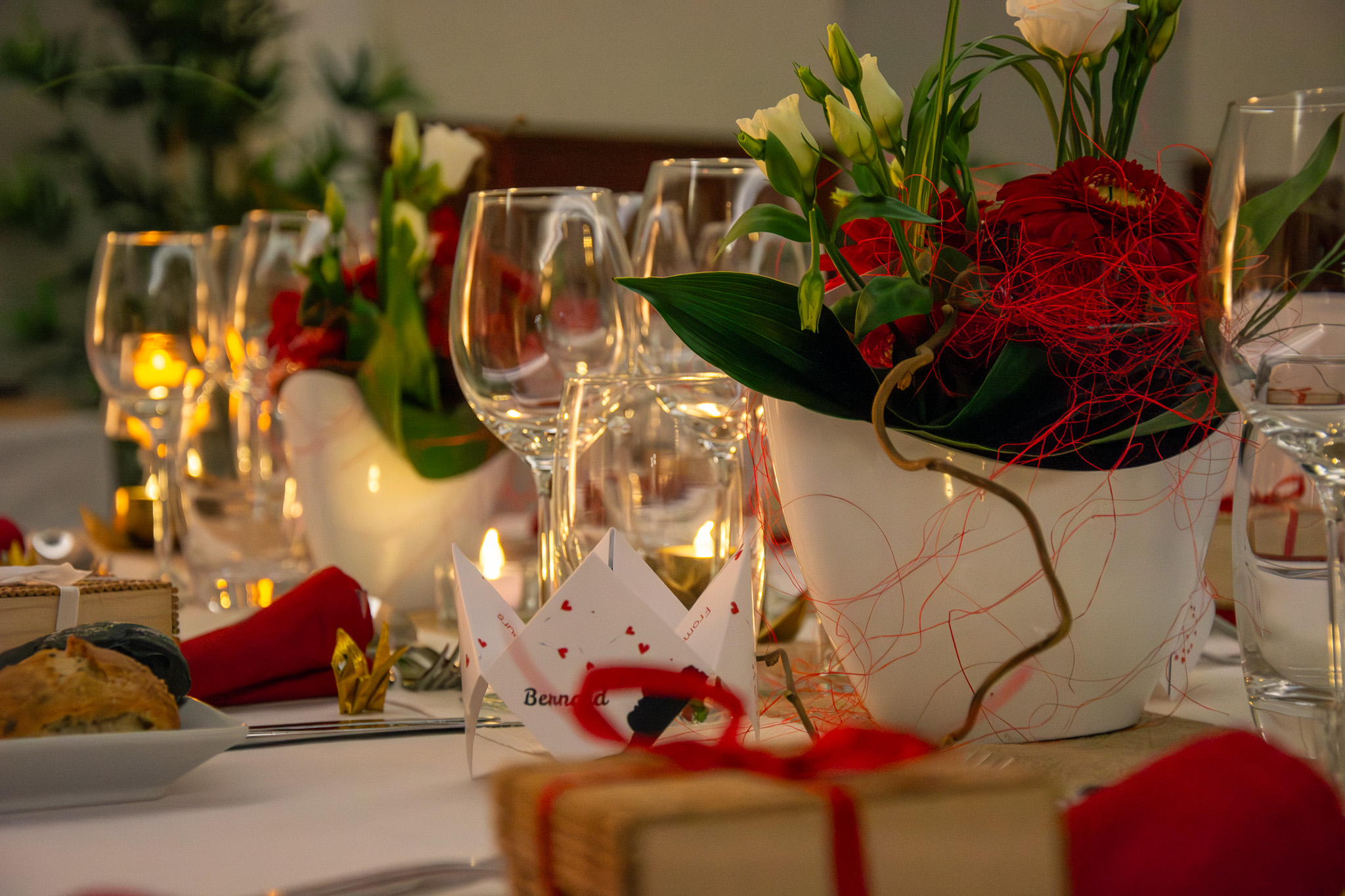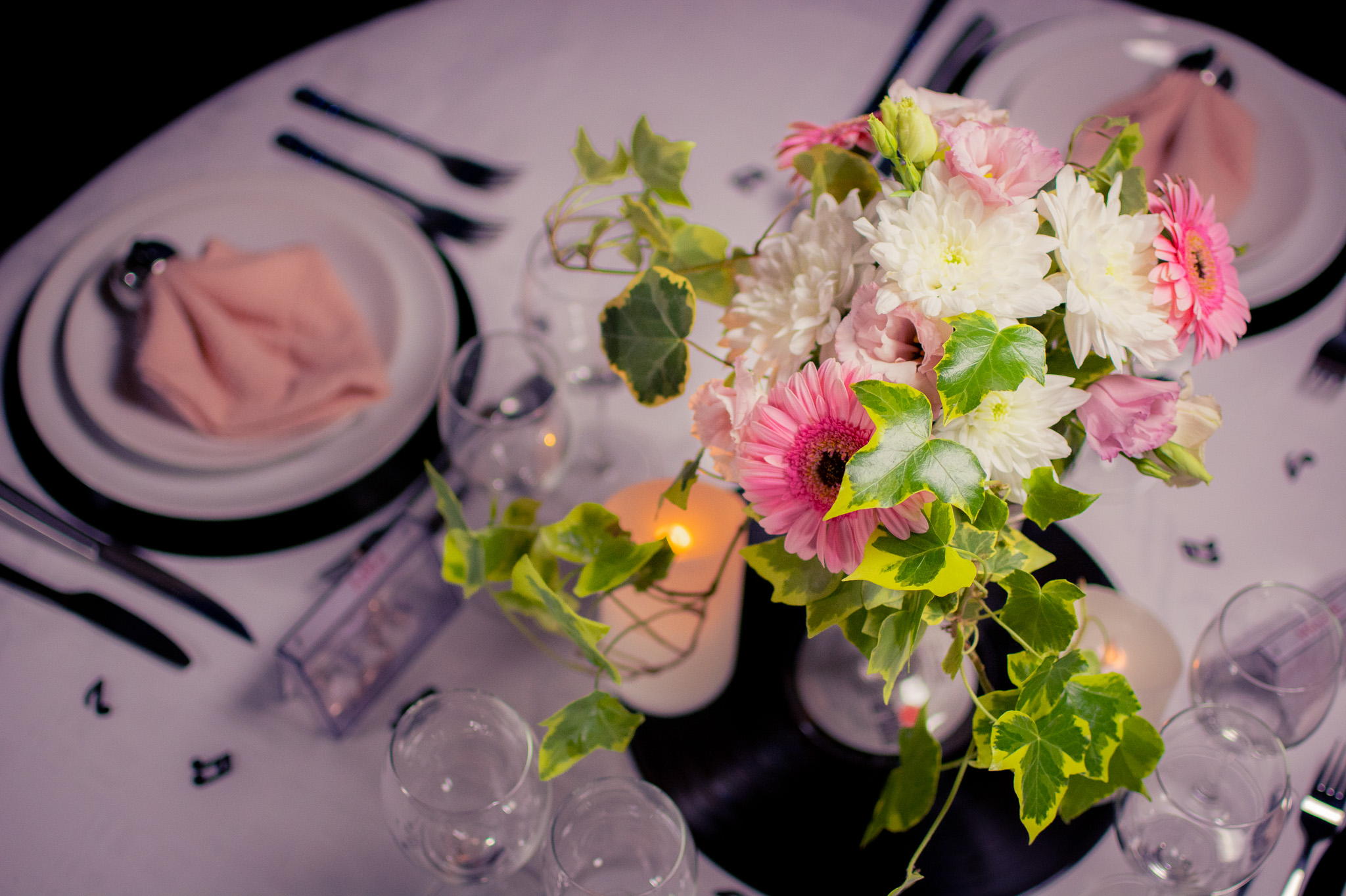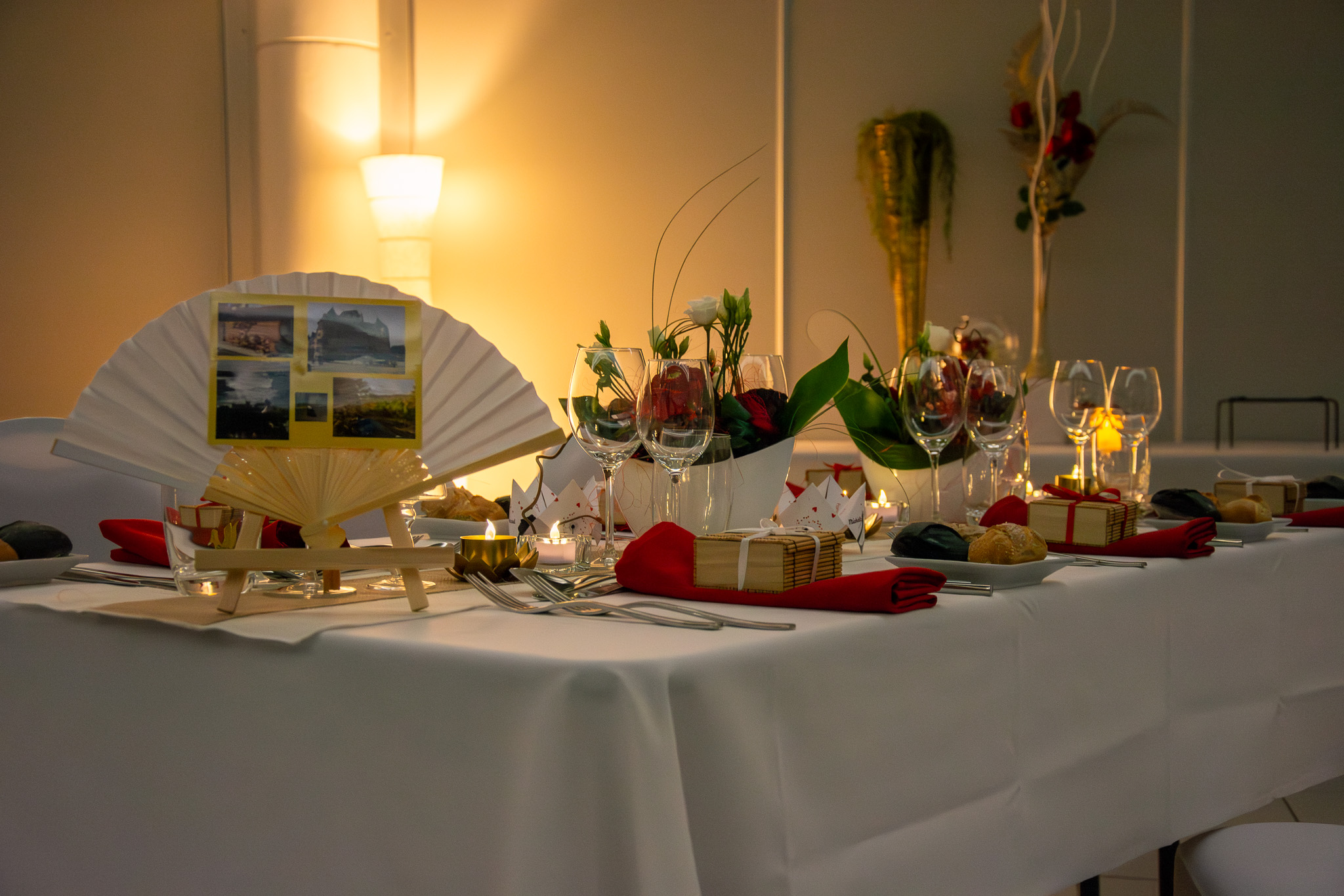 Mes clients souhaitaient une soirée familiale avec une décoration élégante, tournée vers le voyage (leur hobby) et des touches japonisantes.