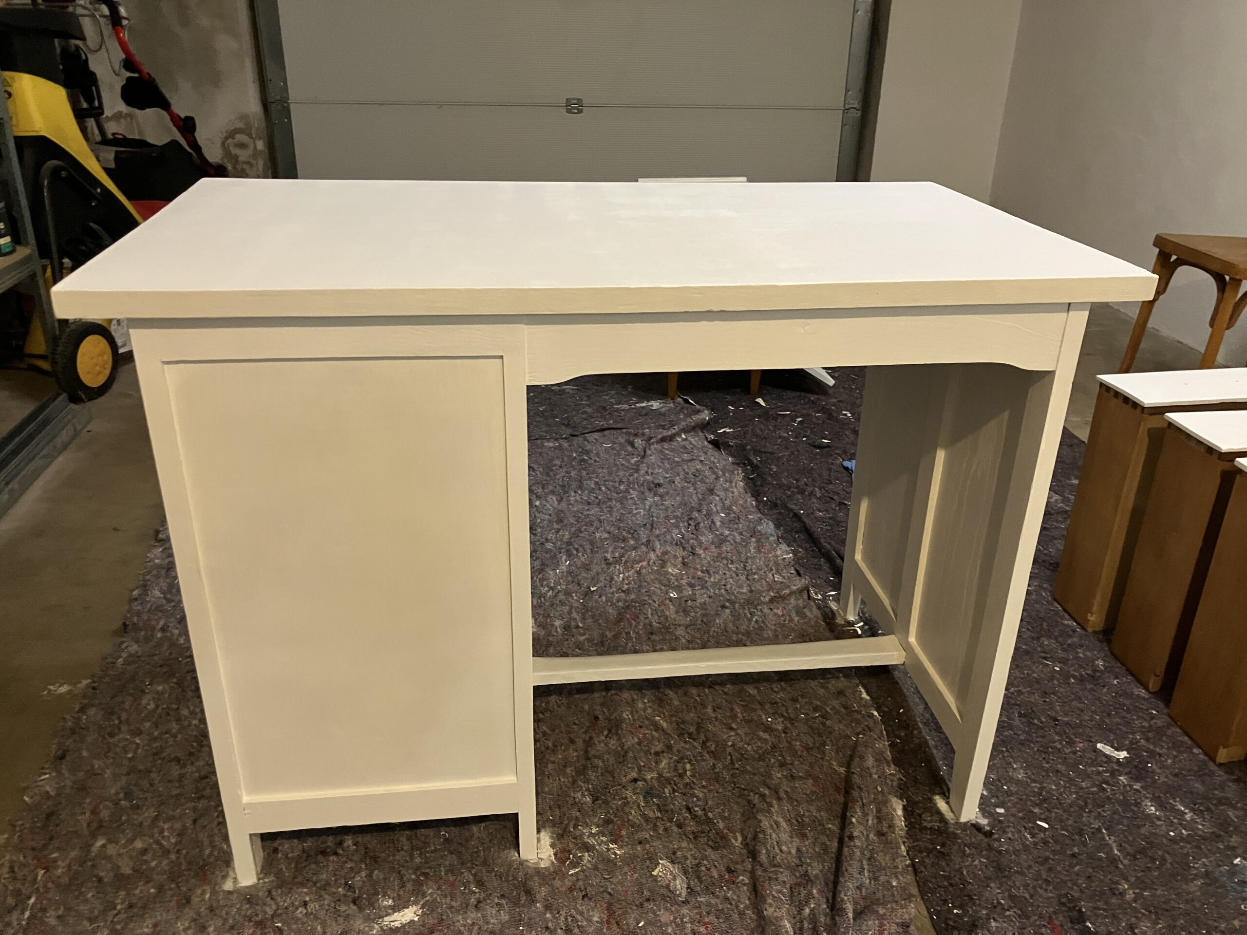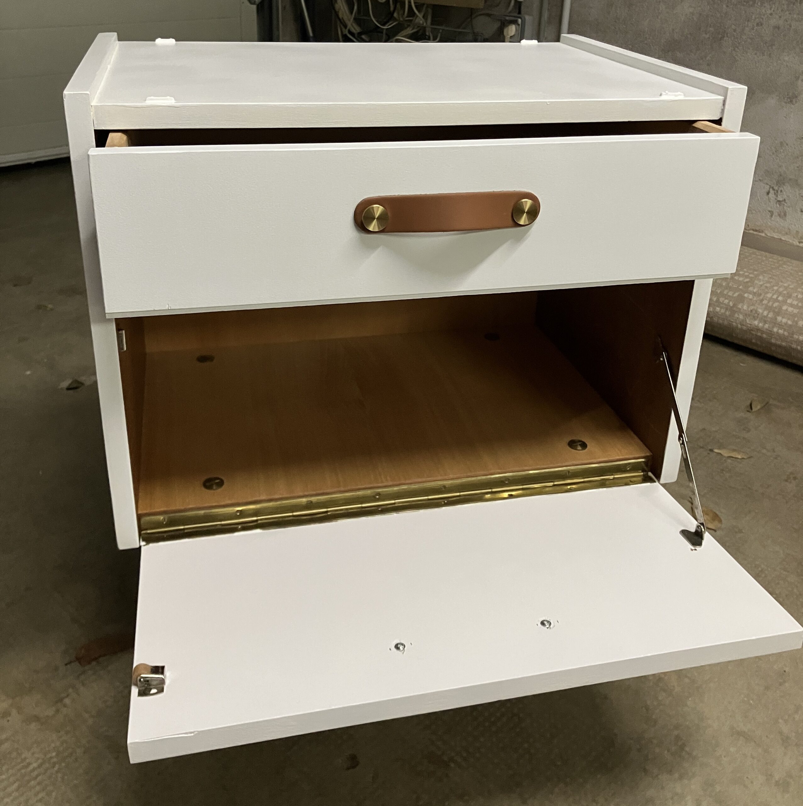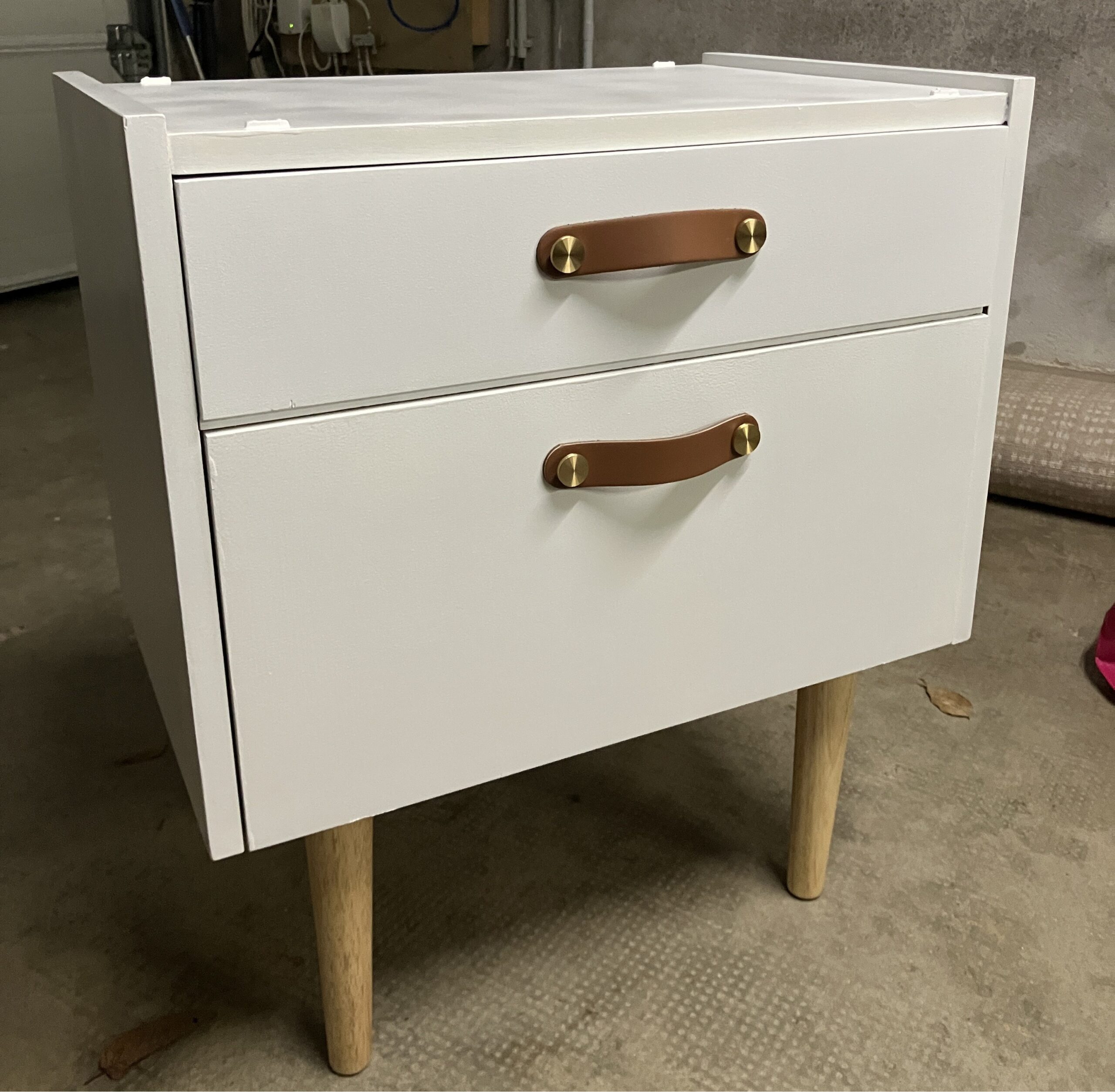Objectifs du projet : réutiliser le mobilier de ma cliente, le rafraîchir, en faire une version scandinave pour aller avec le chevet assorti.