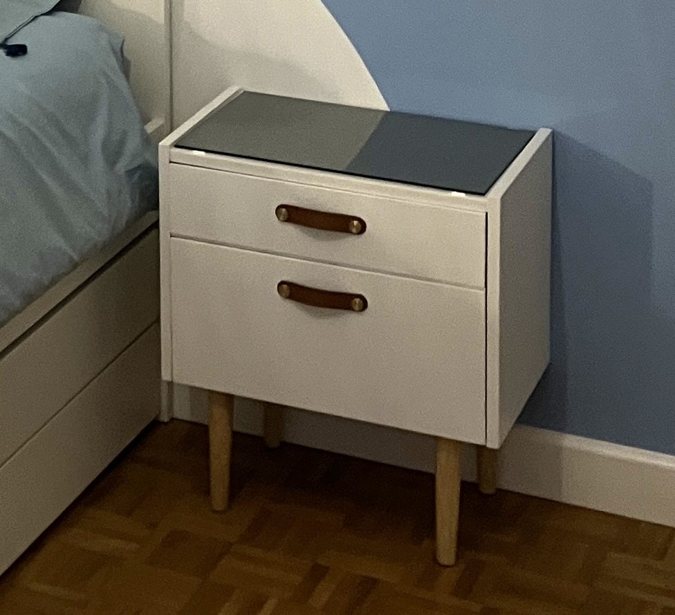 Objectifs du projet: réutiliser le mobilier de ma cliente, revoir et corriger un chevet ancien en chevet scandinave pour l’aménagement d’une chambre ado